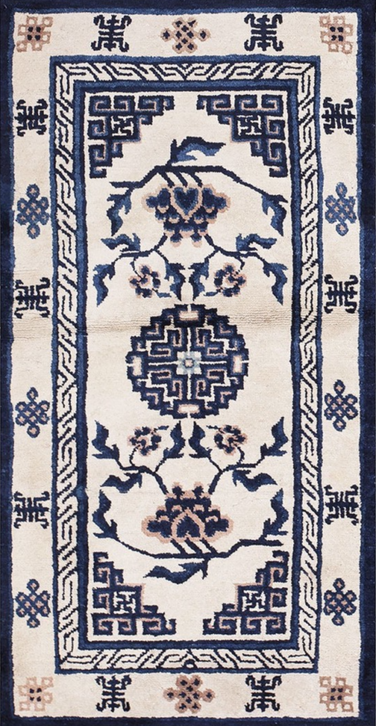 Chinese art loves symbols! Whether they are calligraphic, pictorial, animals or flowers, objects or natural phenomena; it is difficult to find a Chinese carpet without some symbolic elements.