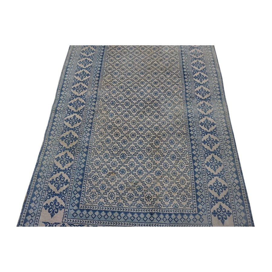 DescriptionAgra - CottonA subtype of Agra production in which the pile is all cotton instead of wool. The color palette is lighter and narrower: often only 3 or 4 tones are used. This tonal minimalism works well with modern décor. The rugs are cool to the touch and are particularly delightful in the summer. Cotton does not have the weaving quality of wool, but many examples are found in excellent condition. Sizes range up to 25 and a limited production continues to the present day. | |