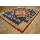 This is an extremely attractive example of neoclassic or Empire French Art Deco with its broad blue cruciform sub field enclosing a red lozenge medallion and sunflower and tulip surrounding motives. The effect is wholly modern, but it is completely sympathetic to post Louis French furniture.