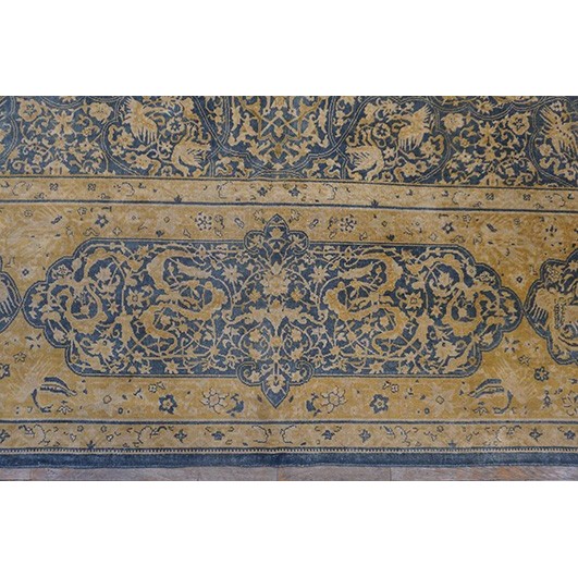 DescriptionBakhtiariThese carpets are made in the Chahar Mahal (Four Places) are of southwest Iran by sedentary villagers, some Armenian, rather than by the nomadic Bakhtiari tribespeoples. They tend to large, square sizes, often over 20 feet in length. Designs are frequently a panel pattern derived from garden carpets, but also lozenge lattices or angular medallions also appear. Colors are bright and the weave is robust. A small group of rugs was made for the Bakhtiari Khans (tribal leaders) early in the 20th century. They are often inscribed and are of very fine workmanship. The more frequently encountered pieces are moderately priced and often in excellent condition. | |