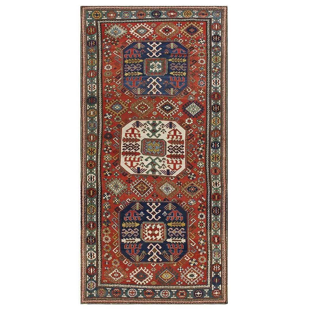 DescriptionCaucasianThis is the general heading for all rugs made in the Caucasus mountains and in the trans-Caucasus areas, north of the Arax River, and between the Black and Caspian Seas. This includes rugs from the Kazak, Karabagh, Gendje, Koghan, Talish, Akstafa, Shirvan, Baku, Kuba and hesghi districts and the variants and subtypes thereof. The rugs are usually in scatter sizes and of all wool construction, with bold colors and geometric patterns, from the 18th through 20th centuries. Prices range widely depending on rarity, color, design and condition. A strong collector market exists for the better examples. | |