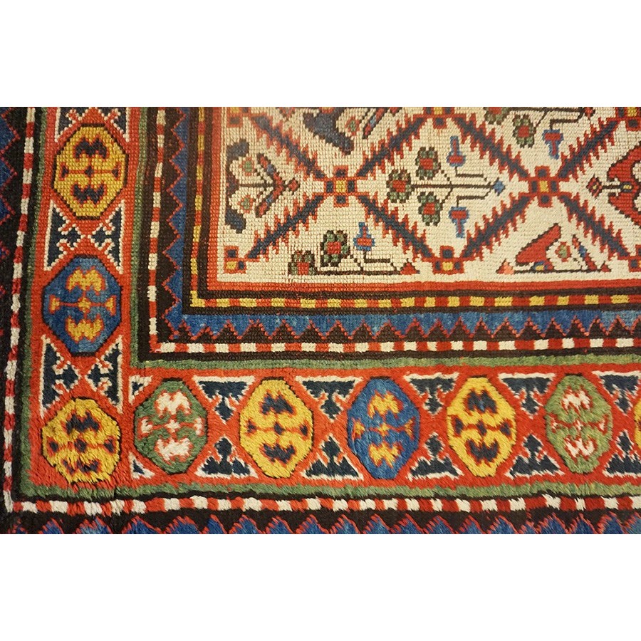 DescriptionCaucasianThis is the general heading for all rugs made in the Caucasus mountains and in the trans-Caucasus areas, north of the Arax River, and between the Black and Caspian Seas. This includes rugs from the Kazak, Karabagh, Gendje, Koghan, Talish, Akstafa, Shirvan, Baku, Kuba and hesghi districts and the variants and subtypes thereof. The rugs are usually in scatter sizes and of all wool construction, with bold colors and geometric patterns, from the 18th through 20th centuries. Prices range widely depending on rarity, color, design and condition. A strong collector market exists for the better examples. CaucasianThis is the general heading for all rugs made in the Caucasus mountains and in the trans-Caucasus areas, north of the Arax River, and between the Black and Caspian Seas. This includes rugs from the Kazak, Karabagh, Gendje, Koghan, Talish, Akstafa, Shirvan, Baku, Kuba and hesghi districts and the variants and subtypes thereof. The rugs are usually in scatter sizes and of all wool construction, with bold colors and geometric patterns, from the 18th through 20th centuries. Prices range widely depending on rarity, color, design and condition. A strong collector market exists for the better examples. | |