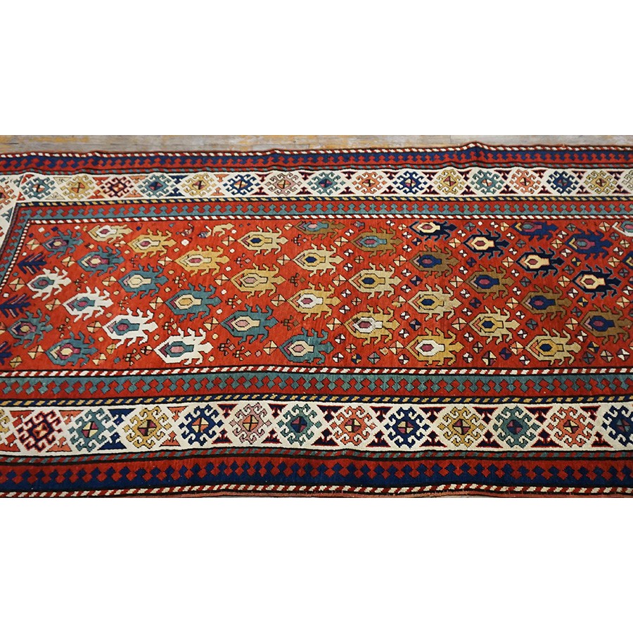 DescriptionCaucasianThis is the general heading for all rugs made in the Caucasus mountains and in the trans-Caucasus areas, north of the Arax River, and between the Black and Caspian Seas. This includes rugs from the Kazak, Karabagh, Gendje, Koghan, Talish, Akstafa, Shirvan, Baku, Kuba and hesghi districts and the variants and subtypes thereof. The rugs are usually in scatter sizes and of all wool construction, with bold colors and geometric patterns, from the 18th through 20th centuries. Prices range widely depending on rarity, color, design and condition. A strong collector market exists for the better examples. CaucasianThis is the general heading for all rugs made in the Caucasus mountains and in the trans-Caucasus areas, north of the Arax River, and between the Black and Caspian Seas. This includes rugs from the Kazak, Karabagh, Gendje, Koghan, Talish, Akstafa, Shirvan, Baku, Kuba and hesghi districts and the variants and subtypes thereof. The rugs are usually in scatter sizes and of all wool construction, with bold colors and geometric patterns, from the 18th through 20th centuries. Prices range widely depending on rarity, color, design and condition. A strong collector market exists for the better examples. | |