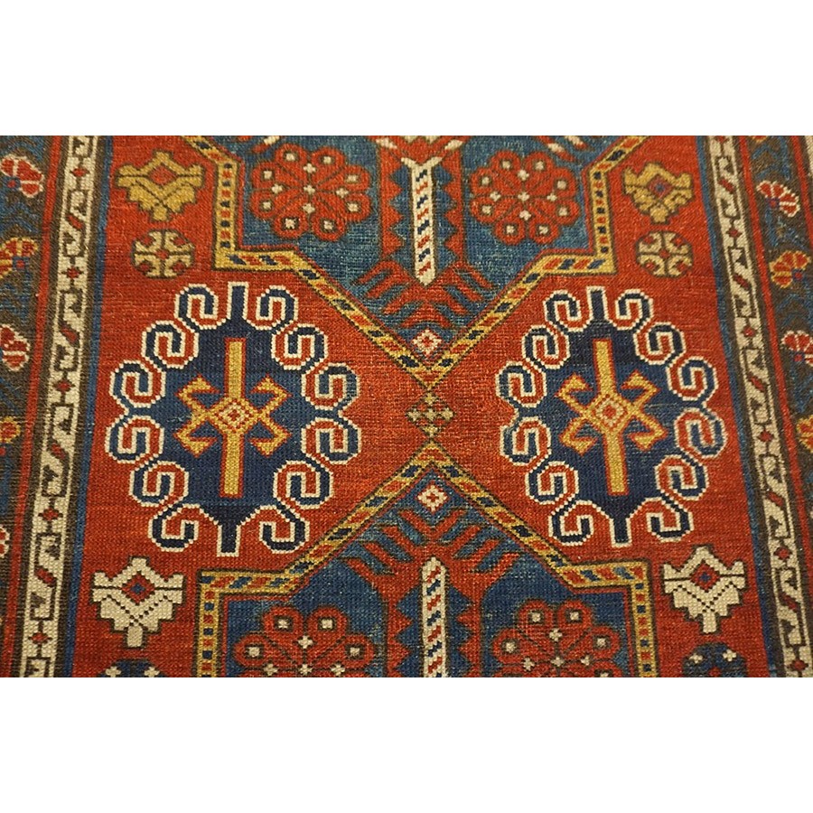 DescriptionCaucasianThis is the general heading for all rugs made in the Caucasus mountains and in the trans-Caucasus areas, north of the Arax River, and between the Black and Caspian Seas. This includes rugs from the Kazak, Karabagh, Gendje, Koghan, Talish, Akstafa, Shirvan, Baku, Kuba and hesghi districts and the variants and subtypes thereof. The rugs are usually in scatter sizes and of all wool construction, with bold colors and geometric patterns, from the 18th through 20th centuries. Prices range widely depending on rarity, color, design and condition. A strong collector market exists for the better examples. | |