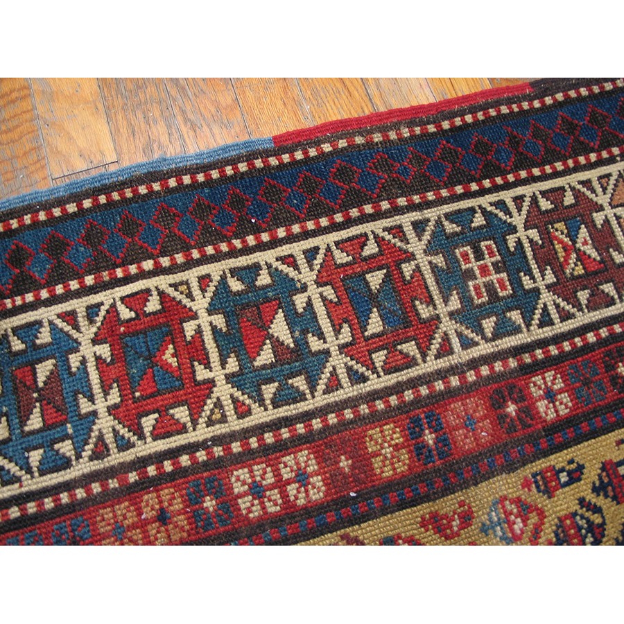 DescriptionCaucasianThis is the general heading for all rugs made in the Caucasus mountains and in the trans-Caucasus areas, north of the Arax River, and between the Black and Caspian Seas. This includes rugs from the Kazak, Karabagh, Gendje, Koghan, Talish, Akstafa, Shirvan, Baku, Kuba and hesghi districts and the variants and subtypes thereof. The rugs are usually in scatter sizes and of all wool construction, with bold colors and geometric patterns, from the 18th through 20th centuries. Prices range widely depending on rarity, color, design and condition. A strong collector market exists for the better examples. Caucasian - MoghanA relatively uncommon rug type woven in the Moghan steppe region just north of the Persian border in the eastern Caucasus. Usually of long rug format (4 x 8), the most common design is a double column of side-hooked, stepped crosses (memling guls), often on a light ground. Not every rug with this pattern is a Moghan and not every Moghan employs them. The weave is firm and neat, pile is short, color range (up to 12 tones) is exceptional. The pancity of good ones means that lesser pieces in the characteristic pattern one frequently passed off as something superior. | |