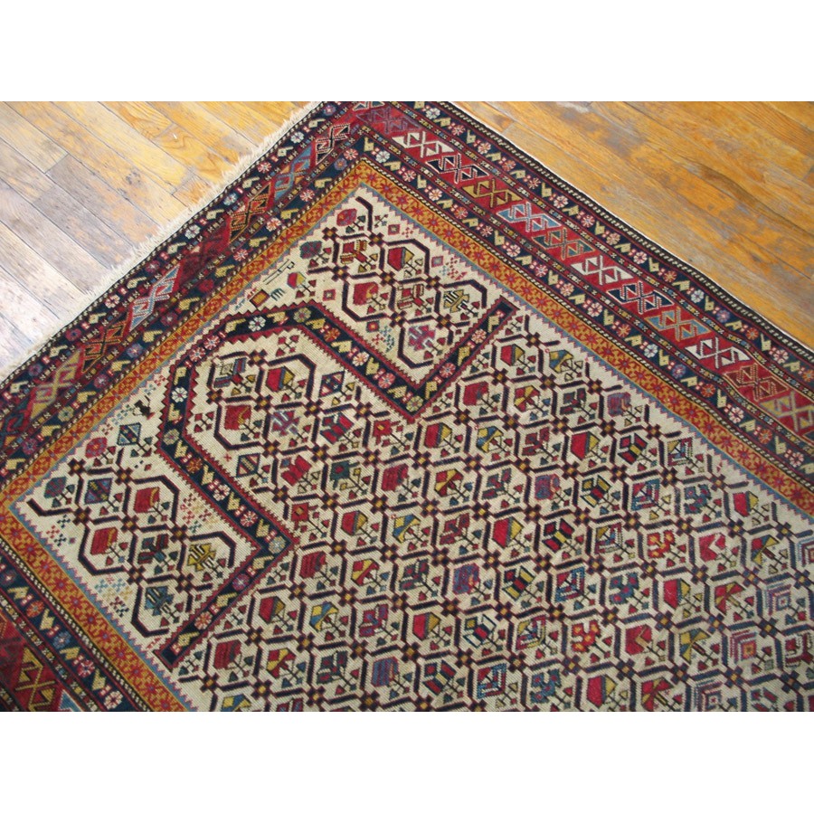 DescriptionCaucasianThis is the general heading for all rugs made in the Caucasus mountains and in the trans-Caucasus areas, north of the Arax River, and between the Black and Caspian Seas. This includes rugs from the Kazak, Karabagh, Gendje, Koghan, Talish, Akstafa, Shirvan, Baku, Kuba and hesghi districts and the variants and subtypes thereof. The rugs are usually in scatter sizes and of all wool construction, with bold colors and geometric patterns, from the 18th through 20th centuries. Prices range widely depending on rarity, color, design and condition. A strong collector market exists for the better examples. CaucasianThis is the general heading for all rugs made in the Caucasus mountains and in the trans-Caucasus areas, north of the Arax River, and between the Black and Caspian Seas. This includes rugs from the Kazak, Karabagh, Gendje, Koghan, Talish, Akstafa, Shirvan, Baku, Kuba and hesghi districts and the variants and subtypes thereof. The rugs are usually in scatter sizes and of all wool construction, with bold colors and geometric patterns, from the 18th through 20th centuries. Prices range widely depending on rarity, color, design and condition. A strong collector market exists for the better examples. | |