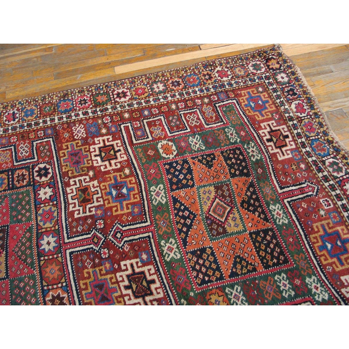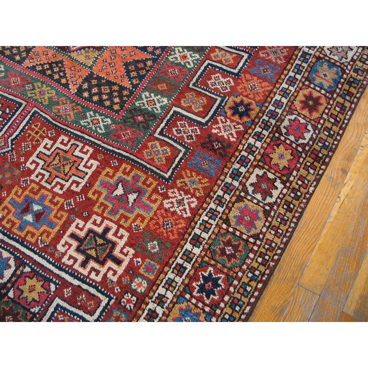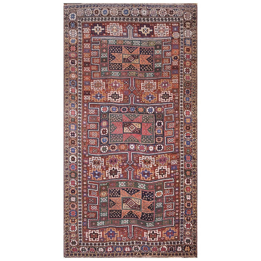 DescriptionCaucasianThis is the general heading for all rugs made in the Caucasus mountains and in the trans-Caucasus areas, north of the Arax River, and between the Black and Caspian Seas. This includes rugs from the Kazak, Karabagh, Gendje, Koghan, Talish, Akstafa, Shirvan, Baku, Kuba and hesghi districts and the variants and subtypes thereof. The rugs are usually in scatter sizes and of all wool construction, with bold colors and geometric patterns, from the 18th through 20th centuries. Prices range widely depending on rarity, color, design and condition. A strong collector market exists for the better examples. CaucasianThis is the general heading for all rugs made in the Caucasus mountains and in the trans-Caucasus areas, north of the Arax River, and between the Black and Caspian Seas. This includes rugs from the Kazak, Karabagh, Gendje, Koghan, Talish, Akstafa, Shirvan, Baku, Kuba and hesghi districts and the variants and subtypes thereof. The rugs are usually in scatter sizes and of all wool construction, with bold colors and geometric patterns, from the 18th through 20th centuries. Prices range widely depending on rarity, color, design and condition. A strong collector market exists for the better examples. | |