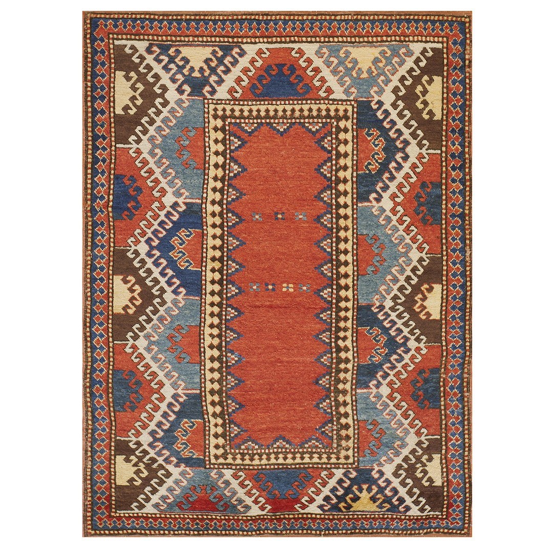 DescriptionCaucasianThis is the general heading for all rugs made in the Caucasus mountains and in the trans-Caucasus areas, north of the Arax River, and between the Black and Caspian Seas. This includes rugs from the Kazak, Karabagh, Gendje, Koghan, Talish, Akstafa, Shirvan, Baku, Kuba and hesghi districts and the variants and subtypes thereof. The rugs are usually in scatter sizes and of all wool construction, with bold colors and geometric patterns, from the 18th through 20th centuries. Prices range widely depending on rarity, color, design and condition. A strong collector market exists for the better examples. CaucasianThis is the general heading for all rugs made in the Caucasus mountains and in the trans-Caucasus areas, north of the Arax River, and between the Black and Caspian Seas. This includes rugs from the Kazak, Karabagh, Gendje, Koghan, Talish, Akstafa, Shirvan, Baku, Kuba and hesghi districts and the variants and subtypes thereof. The rugs are usually in scatter sizes and of all wool construction, with bold colors and geometric patterns, from the 18th through 20th centuries. Prices range widely depending on rarity, color, design and condition. A strong collector market exists for the better examples. | |