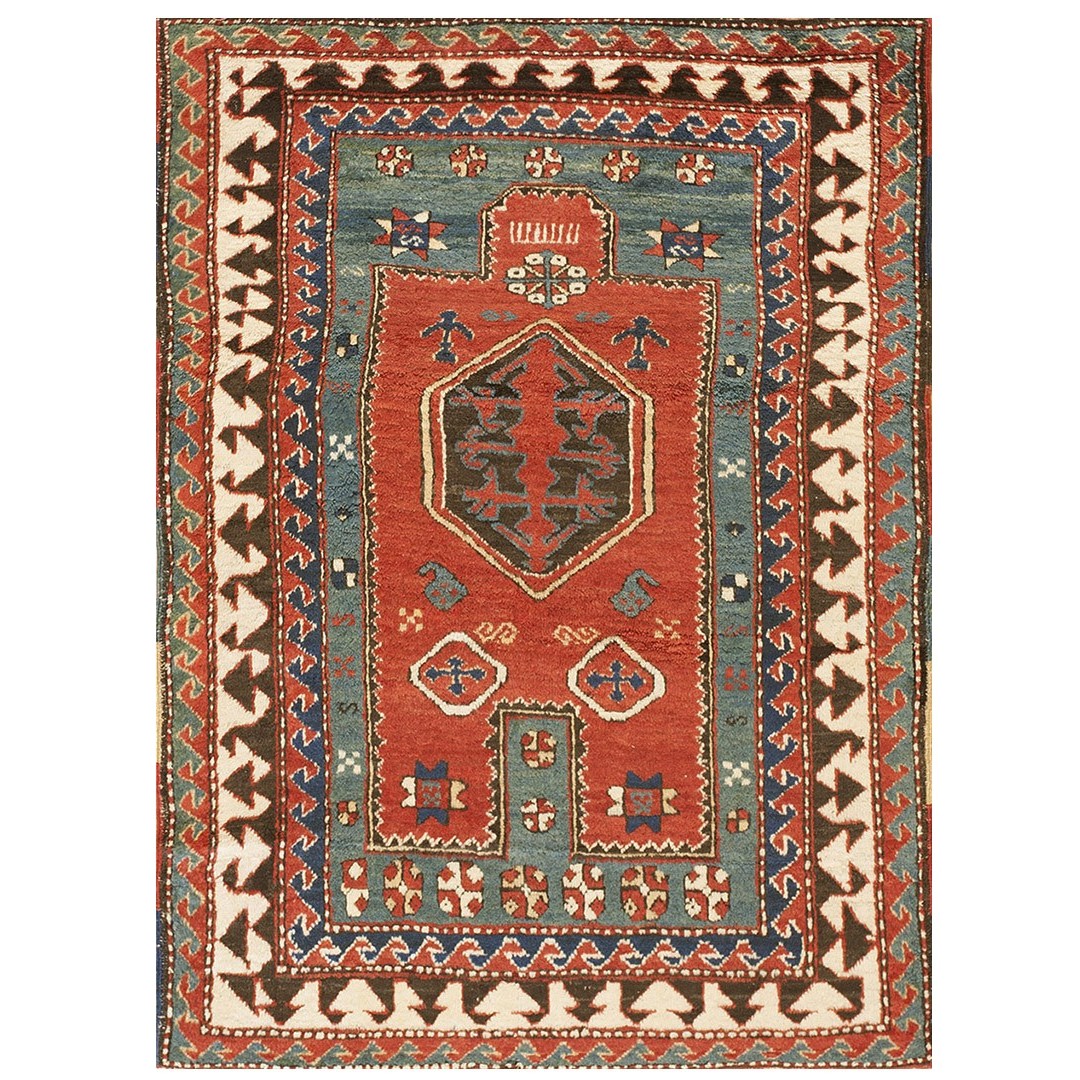 DescriptionCaucasianThis is the general heading for all rugs made in the Caucasus mountains and in the trans-Caucasus areas, north of the Arax River, and between the Black and Caspian Seas. This includes rugs from the Kazak, Karabagh, Gendje, Koghan, Talish, Akstafa, Shirvan, Baku, Kuba and hesghi districts and the variants and subtypes thereof. The rugs are usually in scatter sizes and of all wool construction, with bold colors and geometric patterns, from the 18th through 20th centuries. Prices range widely depending on rarity, color, design and condition. A strong collector market exists for the better examples. CaucasianThis is the general heading for all rugs made in the Caucasus mountains and in the trans-Caucasus areas, north of the Arax River, and between the Black and Caspian Seas. This includes rugs from the Kazak, Karabagh, Gendje, Koghan, Talish, Akstafa, Shirvan, Baku, Kuba and hesghi districts and the variants and subtypes thereof. The rugs are usually in scatter sizes and of all wool construction, with bold colors and geometric patterns, from the 18th through 20th centuries. Prices range widely depending on rarity, color, design and condition. A strong collector market exists for the better examples. | |