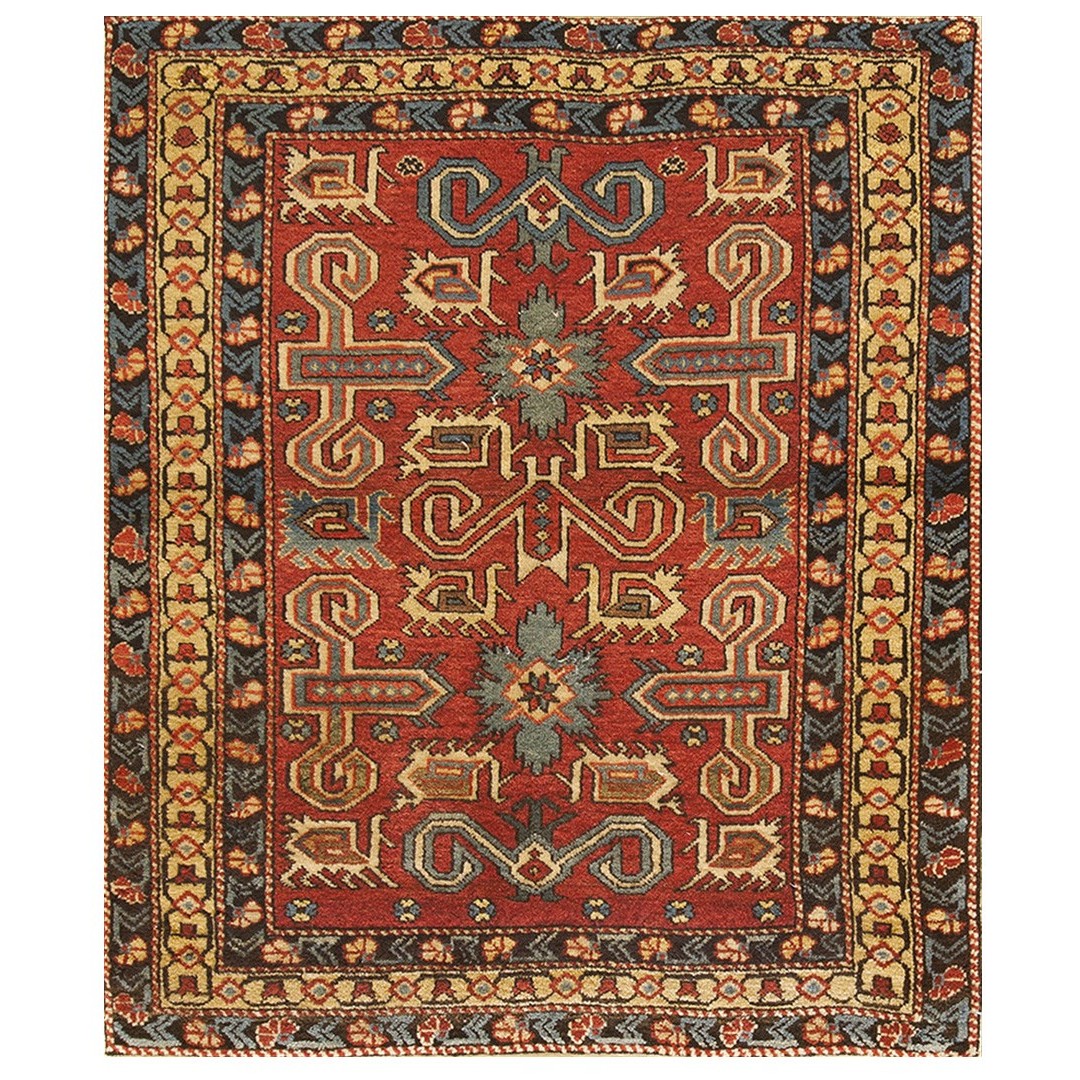 DescriptionCaucasianThis is the general heading for all rugs made in the Caucasus mountains and in the trans-Caucasus areas, north of the Arax River, and between the Black and Caspian Seas. This includes rugs from the Kazak, Karabagh, Gendje, Koghan, Talish, Akstafa, Shirvan, Baku, Kuba and hesghi districts and the variants and subtypes thereof. The rugs are usually in scatter sizes and of all wool construction, with bold colors and geometric patterns, from the 18th through 20th centuries. Prices range widely depending on rarity, color, design and condition. A strong collector market exists for the better examples. CaucasianThis is the general heading for all rugs made in the Caucasus mountains and in the trans-Caucasus areas, north of the Arax River, and between the Black and Caspian Seas. This includes rugs from the Kazak, Karabagh, Gendje, Koghan, Talish, Akstafa, Shirvan, Baku, Kuba and hesghi districts and the variants and subtypes thereof. The rugs are usually in scatter sizes and of all wool construction, with bold colors and geometric patterns, from the 18th through 20th centuries. Prices range widely depending on rarity, color, design and condition. A strong collector market exists for the better examples. | |