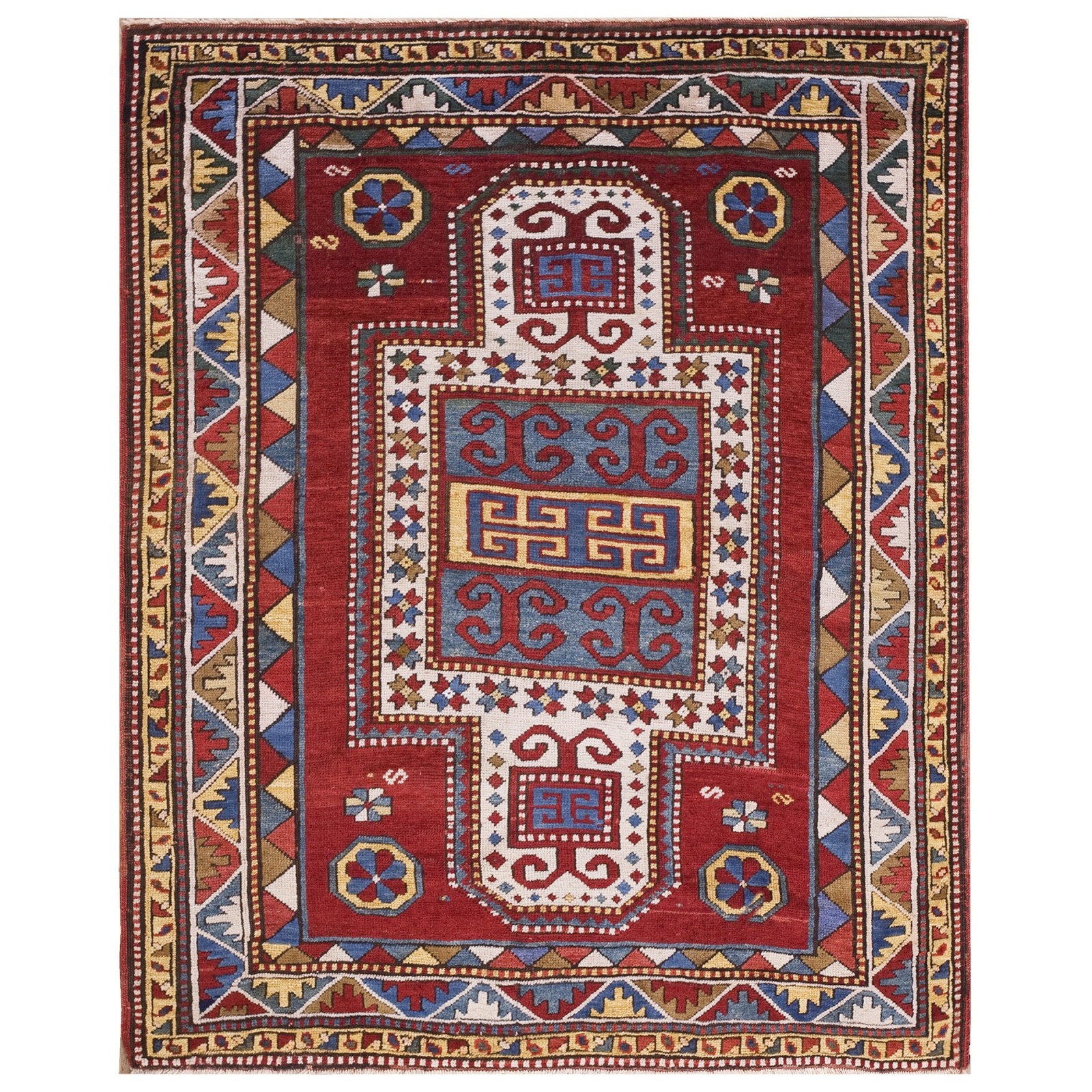 DescriptionCaucasianThis is the general heading for all rugs made in the Caucasus mountains and in the trans-Caucasus areas, north of the Arax River, and between the Black and Caspian Seas. This includes rugs from the Kazak, Karabagh, Gendje, Koghan, Talish, Akstafa, Shirvan, Baku, Kuba and hesghi districts and the variants and subtypes thereof. The rugs are usually in scatter sizes and of all wool construction, with bold colors and geometric patterns, from the 18th through 20th centuries. Prices range widely depending on rarity, color, design and condition. A strong collector market exists for the better examples. CaucasianThis is the general heading for all rugs made in the Caucasus mountains and in the trans-Caucasus areas, north of the Arax River, and between the Black and Caspian Seas. This includes rugs from the Kazak, Karabagh, Gendje, Koghan, Talish, Akstafa, Shirvan, Baku, Kuba and hesghi districts and the variants and subtypes thereof. The rugs are usually in scatter sizes and of all wool construction, with bold colors and geometric patterns, from the 18th through 20th centuries. Prices range widely depending on rarity, color, design and condition. A strong collector market exists for the better examples. | |