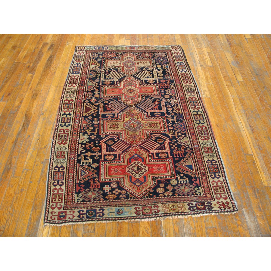 DescriptionCaucasianThis is the general heading for all rugs made in the Caucasus mountains and in the trans-Caucasus areas, north of the Arax River, and between the Black and Caspian Seas. This includes rugs from the Kazak, Karabagh, Gendje, Koghan, Talish, Akstafa, Shirvan, Baku, Kuba and hesghi districts and the variants and subtypes thereof. The rugs are usually in scatter sizes and of all wool construction, with bold colors and geometric patterns, from the 18th through 20th centuries. Prices range widely depending on rarity, color, design and condition. A strong collector market exists for the better examples. CaucasianThis is the general heading for all rugs made in the Caucasus mountains and in the trans-Caucasus areas, north of the Arax River, and between the Black and Caspian Seas. This includes rugs from the Kazak, Karabagh, Gendje, Koghan, Talish, Akstafa, Shirvan, Baku, Kuba and hesghi districts and the variants and subtypes thereof. The rugs are usually in scatter sizes and of all wool construction, with bold colors and geometric patterns, from the 18th through 20th centuries. Prices range widely depending on rarity, color, design and condition. A strong collector market exists for the better examples. | |
