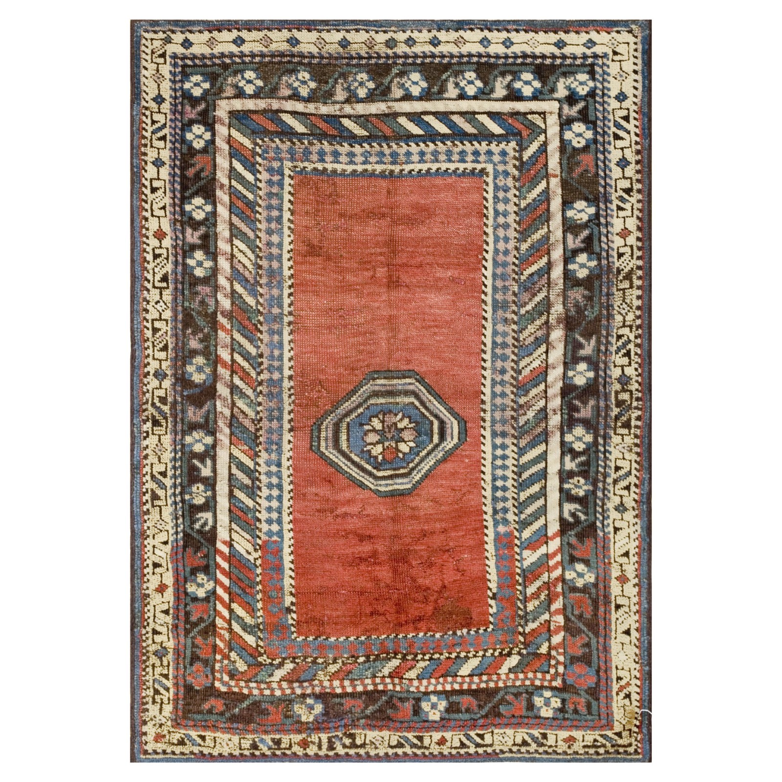 DescriptionCaucasianThis is the general heading for all rugs made in the Caucasus mountains and in the trans-Caucasus areas, north of the Arax River, and between the Black and Caspian Seas. This includes rugs from the Kazak, Karabagh, Gendje, Koghan, Talish, Akstafa, Shirvan, Baku, Kuba and hesghi districts and the variants and subtypes thereof. The rugs are usually in scatter sizes and of all wool construction, with bold colors and geometric patterns, from the 18th through 20th centuries. Prices range widely depending on rarity, color, design and condition. A strong collector market exists for the better examples. CaucasianThis is the general heading for all rugs made in the Caucasus mountains and in the trans-Caucasus areas, north of the Arax River, and between the Black and Caspian Seas. This includes rugs from the Kazak, Karabagh, Gendje, Koghan, Talish, Akstafa, Shirvan, Baku, Kuba and hesghi districts and the variants and subtypes thereof. The rugs are usually in scatter sizes and of all wool construction, with bold colors and geometric patterns, from the 18th through 20th centuries. Prices range widely depending on rarity, color, design and condition. A strong collector market exists for the better examples. | |