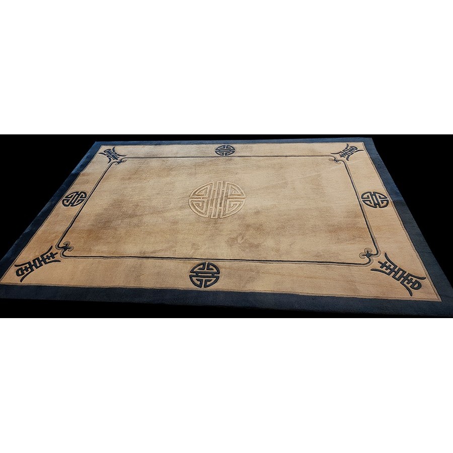 DescriptionChineseCarpets made in China proper. See entries Ningshia, Peking, Art Deco. Chinese - Art DecoAs the name implies, pieces woven between the wars for the Western market by mostly American owned firms especially Nichols and Fette, in thick heavy weaves using strong colors, asymmetric patterns and downplaying the Chinese-ness of the carpet. Nichols rugs are more strong toned than the pastel Fette. Most were woven in the coastal port city of Tientsin. Other lesser known workshops were also active. Some pieces are ultra-geometric and haute-Deco moderne in character: these are very rare. More frequent are pieces with bits of Chinese ornament: vases or other precious objects, paeonies, vines, fences, etc. Most common is the 9 x 12 size, in colors never found in mainstream Chinese rugs: backgrounds in black, mauve, purple, hot pink, orange, olive, employing the best synthetic chrome dyes of the period. Prices are still reasonable and carpets in top condition are available. | |