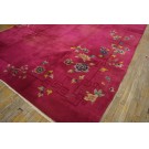 DescriptionChineseCarpets made in China proper. See entries Ningshia, Peking, Art Deco. Chinese - Art DecoAs the name implies, pieces woven between the wars for the Western market by mostly American owned firms especially Nichols and Fette, in thick heavy weaves using strong colors, asymmetric patterns and downplaying the Chinese-ness of the carpet. Nichols rugs are more strong toned than the pastel Fette. Most were woven in the coastal port city of Tientsin. Other lesser known workshops were also active. Some pieces are ultra-geometric and haute-Deco moderne in character: these are very rare. More frequent are pieces with bits of Chinese ornament: vases or other precious objects, paeonies, vines, fences, etc. Most common is the 9 x 12 size, in colors never found in mainstream Chinese rugs: backgrounds in black, mauve, purple, hot pink, orange, olive, employing the best synthetic chrome dyes of the period. Prices are still reasonable and carpets in top condition are available. | |