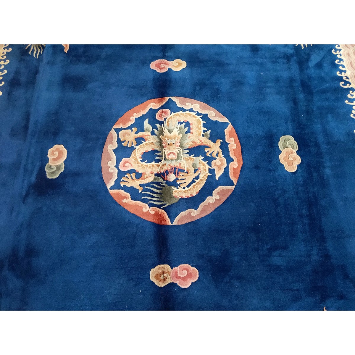 Vintage 1980s Chinese Art Deco Dragon Carpet