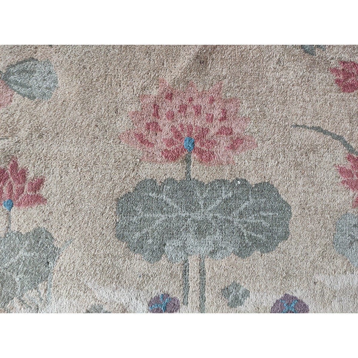 DescriptionChineseCarpets made in China proper. See entries Ningshia, Peking, Art Deco. Chinese - Art DecoAs the name implies, pieces woven between the wars for the Western market by mostly American owned firms especially Nichols and Fette, in thick heavy weaves using strong colors, asymmetric patterns and downplaying the Chinese-ness of the carpet. Nichols rugs are more strong toned than the pastel Fette. Most were woven in the coastal port city of Tientsin. Other lesser known workshops were also active. Some pieces are ultra-geometric and haute-Deco moderne in character: these are very rare. More frequent are pieces with bits of Chinese ornament: vases or other precious objects, paeonies, vines, fences, etc. Most common is the 9 x 12 size, in colors never found in mainstream Chinese rugs: backgrounds in black, mauve, purple, hot pink, orange, olive, employing the best synthetic chrome dyes of the period. Prices are still reasonable and carpets in top condition are available. | |