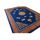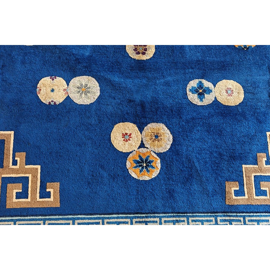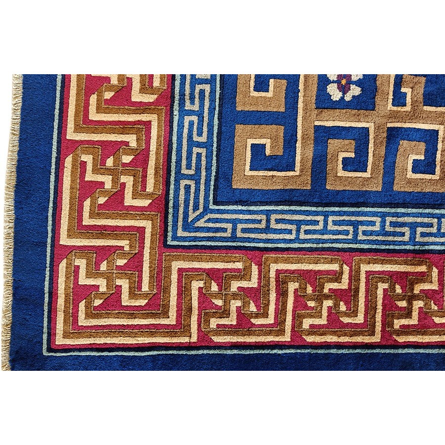 DescriptionChineseCarpets made in China proper. See entries Ningshia, Peking, Art Deco. Chinese - Art DecoAs the name implies, pieces woven between the wars for the Western market by mostly American owned firms especially Nichols and Fette, in thick heavy weaves using strong colors, asymmetric patterns and downplaying the Chinese-ness of the carpet. Nichols rugs are more strong toned than the pastel Fette. Most were woven in the coastal port city of Tientsin. Other lesser known workshops were also active. Some pieces are ultra-geometric and haute-Deco moderne in character: these are very rare. More frequent are pieces with bits of Chinese ornament: vases or other precious objects, paeonies, vines, fences, etc. Most common is the 9 x 12 size, in colors never found in mainstream Chinese rugs: backgrounds in black, mauve, purple, hot pink, orange, olive, employing the best synthetic chrome dyes of the period. Prices are still reasonable and carpets in top condition are available. | |