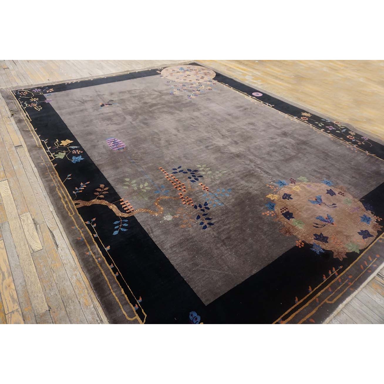 DescriptionChineseCarpets made in China proper. See entries Ningshia, Peking, Art Deco. Chinese - Art DecoAs the name implies, pieces woven between the wars for the Western market by mostly American owned firms especially Nichols and Fette, in thick heavy weaves using strong colors, asymmetric patterns and downplaying the Chinese-ness of the carpet. Nichols rugs are more strong toned than the pastel Fette. Most were woven in the coastal port city of Tientsin. Other lesser known workshops were also active. Some pieces are ultra-geometric and haute-Deco moderne in character: these are very rare. More frequent are pieces with bits of Chinese ornament: vases or other precious objects, paeonies, vines, fences, etc. Most common is the 9 x 12 size, in colors never found in mainstream Chinese rugs: backgrounds in black, mauve, purple, hot pink, orange, olive, employing the best synthetic chrome dyes of the period. Prices are still reasonable and carpets in top condition are available. | |