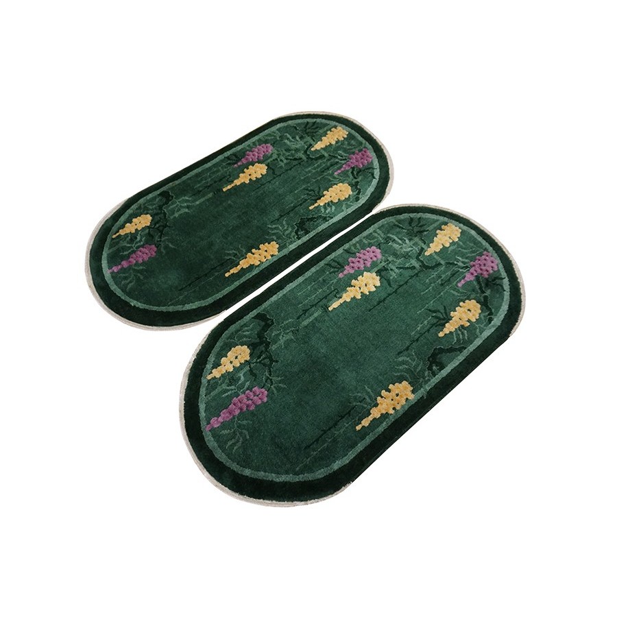 DescriptionChineseCarpets made in China proper. See entries Ningshia, Peking, Art Deco. Chinese - Art DecoAs the name implies, pieces woven between the wars for the Western market by mostly American owned firms especially Nichols and Fette, in thick heavy weaves using strong colors, asymmetric patterns and downplaying the Chinese-ness of the carpet. Nichols rugs are more strong toned than the pastel Fette. Most were woven in the coastal port city of Tientsin. Other lesser known workshops were also active. Some pieces are ultra-geometric and haute-Deco moderne in character: these are very rare. More frequent are pieces with bits of Chinese ornament: vases or other precious objects, paeonies, vines, fences, etc. Most common is the 9 x 12 size, in colors never found in mainstream Chinese rugs: backgrounds in black, mauve, purple, hot pink, orange, olive, employing the best synthetic chrome dyes of the period. Prices are still reasonable and carpets in top condition are available. | |