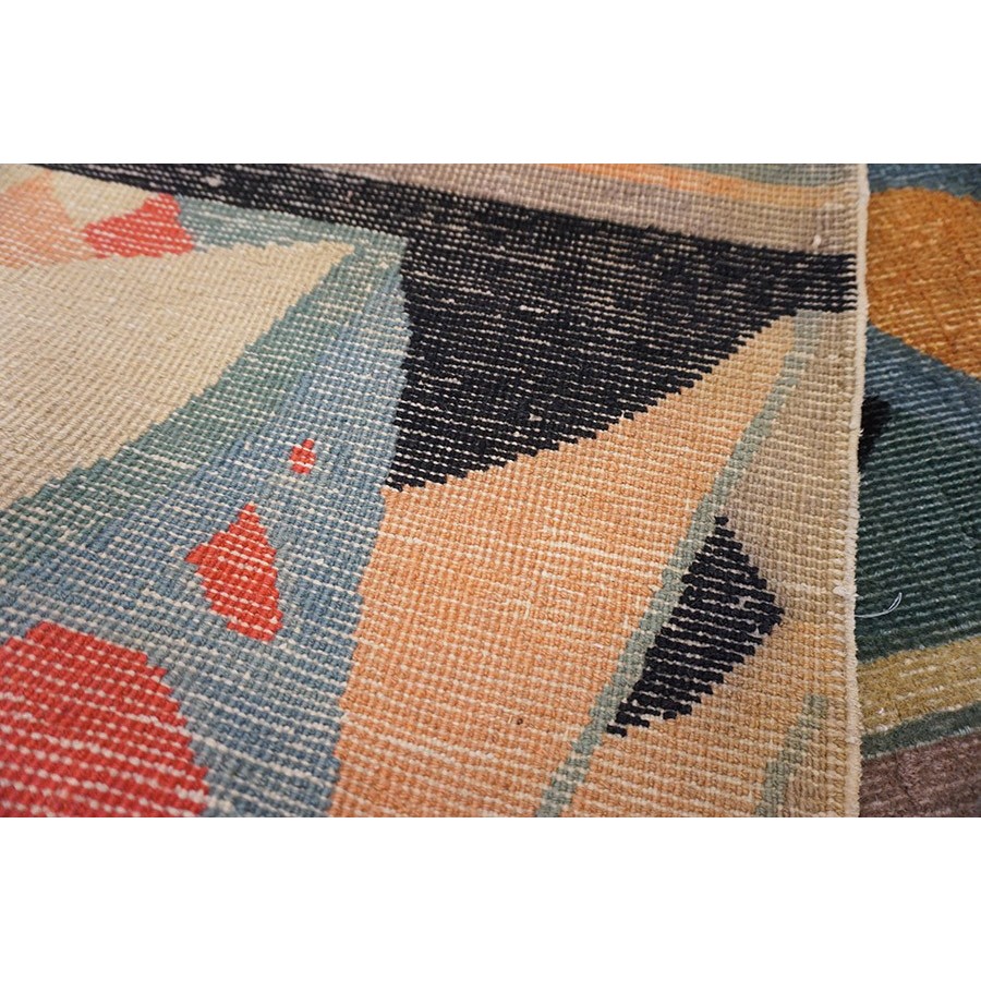 DescriptionChineseCarpets made in China proper. See entries Ningshia, Peking, Art Deco. Chinese - Art DecoAs the name implies, pieces woven between the wars for the Western market by mostly American owned firms especially Nichols and Fette, in thick heavy weaves using strong colors, asymmetric patterns and downplaying the Chinese-ness of the carpet. Nichols rugs are more strong toned than the pastel Fette. Most were woven in the coastal port city of Tientsin. Other lesser known workshops were also active. Some pieces are ultra-geometric and haute-Deco moderne in character: these are very rare. More frequent are pieces with bits of Chinese ornament: vases or other precious objects, paeonies, vines, fences, etc. Most common is the 9 x 12 size, in colors never found in mainstream Chinese rugs: backgrounds in black, mauve, purple, hot pink, orange, olive, employing the best synthetic chrome dyes of the period. Prices are still reasonable and carpets in top condition are available. | |