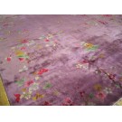 DescriptionChineseCarpets made in China proper. See entries Ningshia, Peking, Art Deco. Chinese - Art DecoAs the name implies, pieces woven between the wars for the Western market by mostly American owned firms especially Nichols and Fette, in thick heavy weaves using strong colors, asymmetric patterns and downplaying the Chinese-ness of the carpet. Nichols rugs are more strong toned than the pastel Fette. Most were woven in the coastal port city of Tientsin. Other lesser known workshops were also active. Some pieces are ultra-geometric and haute-Deco moderne in character: these are very rare. More frequent are pieces with bits of Chinese ornament: vases or other precious objects, paeonies, vines, fences, etc. Most common is the 9 x 12 size, in colors never found in mainstream Chinese rugs: backgrounds in black, mauve, purple, hot pink, orange, olive, employing the best synthetic chrome dyes of the period. Prices are still reasonable and carpets in top condition are available. | |