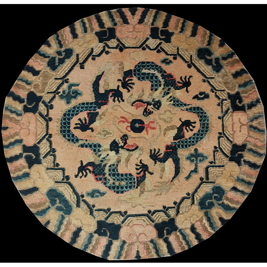 19th Century W. Chinese Round Ningxia Dragon Carpet