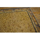 DescriptionChineseCarpets made in China proper. See entries Ningshia, Peking, Art Deco. Chinese - NingxiaThe western Chinese province of Ningshia has a mostly Muslim population and is the source of many of the oldest Chinese carpets of the modern (Ming Dynasty and later) era. The designs are typically Chinese: fretwork or Greek key boarders, pacony palmettes, bats, butterflies, Fu dogs, clouds, dragons, shou symbols, etc. Pollar carpets designed to wrap around monastery columns and displaying a dragon above waves are a specialty. The weave is coarse and soft, with several wefts between knot rows and a longish pile. Yellow golds, dark and light blues are common colors. The outer most plain border on pre 1800 examples is a corrosive brown. Formats include: large square throne carpets, paralleled meditation runners, chair seats and scalloped backs. | |