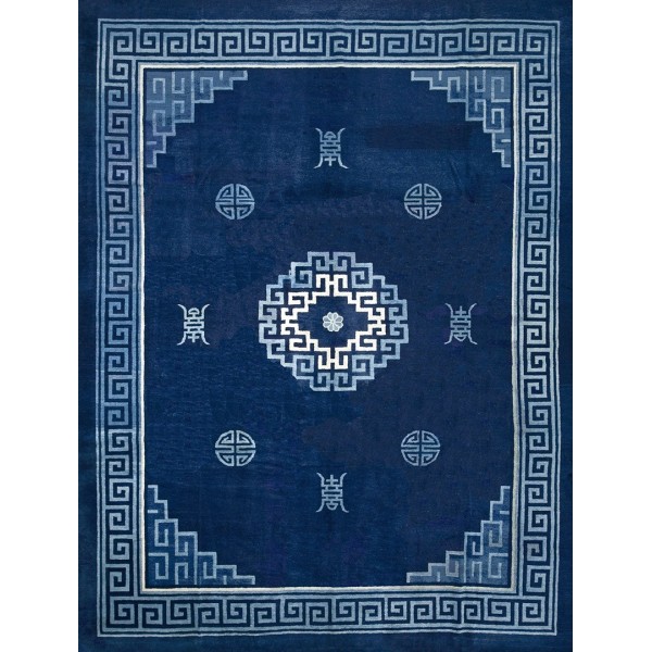 DescriptionChineseCarpets made in China proper. See entries Ningshia, Peking, Art Deco. Chinese - PekingThe commercial Peking carpet is a later 19th century development, begun by importing weaves from Ningshia (see entry) to create and export industry aimed at Western markets. The foundation is cotton and the pile is a good quality carpet wool which takes dyes particularly well. The neat medium weave is in Persian (asymmetric) knots. Designs are strictly Chinese and the whole motif repertoire of Chinese art is employed. Blue and white is the most popular color combination and red is particularly rare. Sizes tend to 9 x 12 and larger, and few small pieces appear. For a short time in the early 1920s Persian designs were woven to capitalize on the death of new Iranian goods. The industry decimated by the Communist Revolution relocated to the Pearl River area. There is a good supply of antique carpets at reasonable prices. | |