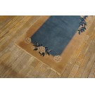 DescriptionChineseCarpets made in China proper. See entries Ningshia, Peking, Art Deco. Chinese - PekingThe commercial Peking carpet is a later 19th century development, begun by importing weaves from Ningshia (see entry) to create and export industry aimed at Western markets. The foundation is cotton and the pile is a good quality carpet wool which takes dyes particularly well. The neat medium weave is in Persian (asymmetric) knots. Designs are strictly Chinese and the whole motif repertoire of Chinese art is employed. Blue and white is the most popular color combination and red is particularly rare. Sizes tend to 9 x 12 and larger, and few small pieces appear. For a short time in the early 1920s Persian designs were woven to capitalize on the death of new Iranian goods. The industry decimated by the Communist Revolution relocated to the Pearl River area. There is a good supply of antique carpets at reasonable prices. | |