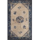 DescriptionChineseCarpets made in China proper. See entries Ningshia, Peking, Art Deco. Chinese - PekingThe commercial Peking carpet is a later 19th century development, begun by importing weaves from Ningshia (see entry) to create and export industry aimed at Western markets. The foundation is cotton and the pile is a good quality carpet wool which takes dyes particularly well. The neat medium weave is in Persian (asymmetric) knots. Designs are strictly Chinese and the whole motif repertoire of Chinese art is employed. Blue and white is the most popular color combination and red is particularly rare. Sizes tend to 9 x 12 and larger, and few small pieces appear. For a short time in the early 1920s Persian designs were woven to capitalize on the death of new Iranian goods. The industry decimated by the Communist Revolution relocated to the Pearl River area. There is a good supply of antique carpets at reasonable prices. | |