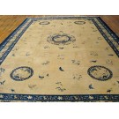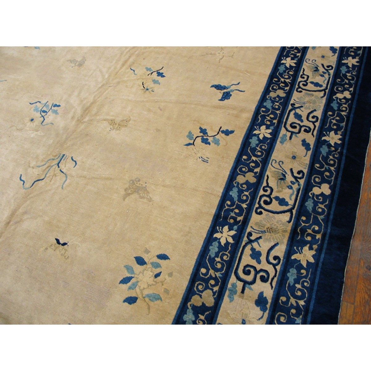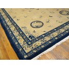 DescriptionChineseCarpets made in China proper. See entries Ningshia, Peking, Art Deco. Chinese - PekingThe commercial Peking carpet is a later 19th century development, begun by importing weaves from Ningshia (see entry) to create and export industry aimed at Western markets. The foundation is cotton and the pile is a good quality carpet wool which takes dyes particularly well. The neat medium weave is in Persian (asymmetric) knots. Designs are strictly Chinese and the whole motif repertoire of Chinese art is employed. Blue and white is the most popular color combination and red is particularly rare. Sizes tend to 9 x 12 and larger, and few small pieces appear. For a short time in the early 1920s Persian designs were woven to capitalize on the death of new Iranian goods. The industry decimated by the Communist Revolution relocated to the Pearl River area. There is a good supply of antique carpets at reasonable prices. | |