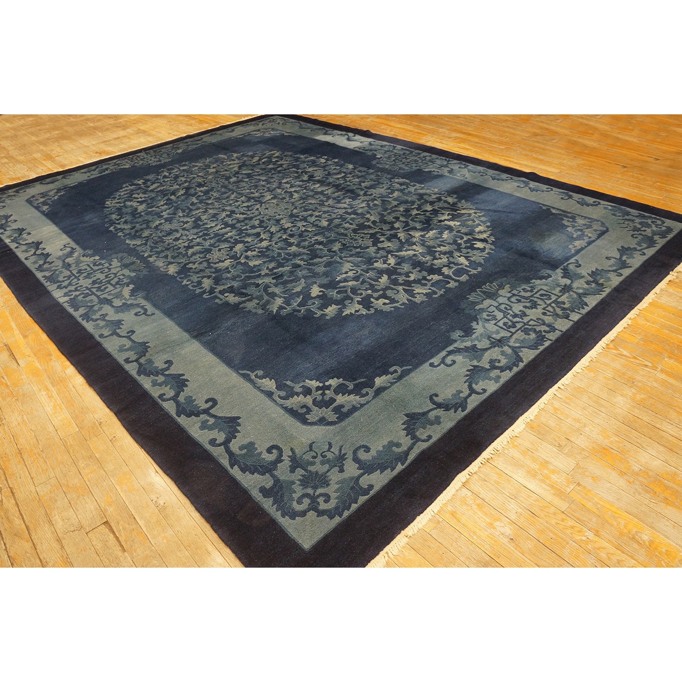 DescriptionChineseCarpets made in China proper. See entries Ningshia, Peking, Art Deco. Chinese - PekingThe commercial Peking carpet is a later 19th century development, begun by importing weaves from Ningshia (see entry) to create and export industry aimed at Western markets. The foundation is cotton and the pile is a good quality carpet wool which takes dyes particularly well. The neat medium weave is in Persian (asymmetric) knots. Designs are strictly Chinese and the whole motif repertoire of Chinese art is employed. Blue and white is the most popular color combination and red is particularly rare. Sizes tend to 9 x 12 and larger, and few small pieces appear. For a short time in the early 1920s Persian designs were woven to capitalize on the death of new Iranian goods. The industry decimated by the Communist Revolution relocated to the Pearl River area. There is a good supply of antique carpets at reasonable prices. | |