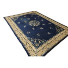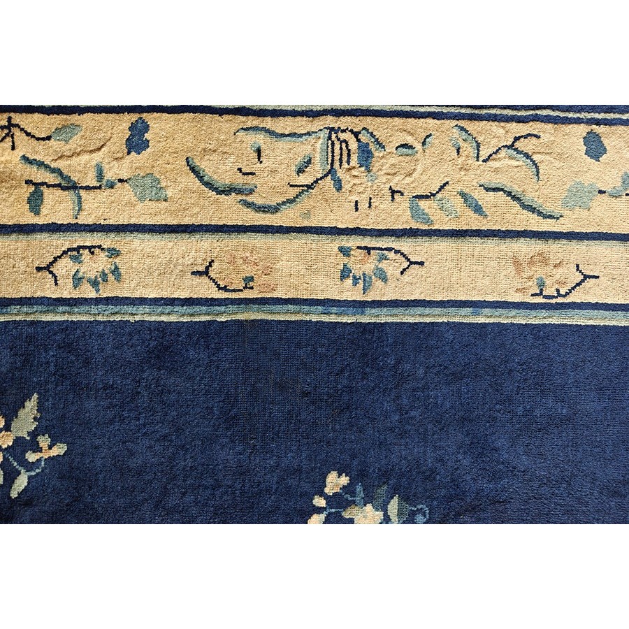 DescriptionChineseCarpets made in China proper. See entries Ningshia, Peking, Art Deco. Chinese - PekingThe commercial Peking carpet is a later 19th century development, begun by importing weaves from Ningshia (see entry) to create and export industry aimed at Western markets. The foundation is cotton and the pile is a good quality carpet wool which takes dyes particularly well. The neat medium weave is in Persian (asymmetric) knots. Designs are strictly Chinese and the whole motif repertoire of Chinese art is employed. Blue and white is the most popular color combination and red is particularly rare. Sizes tend to 9 x 12 and larger, and few small pieces appear. For a short time in the early 1920s Persian designs were woven to capitalize on the death of new Iranian goods. The industry decimated by the Communist Revolution relocated to the Pearl River area. There is a good supply of antique carpets at reasonable prices. | |