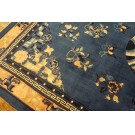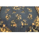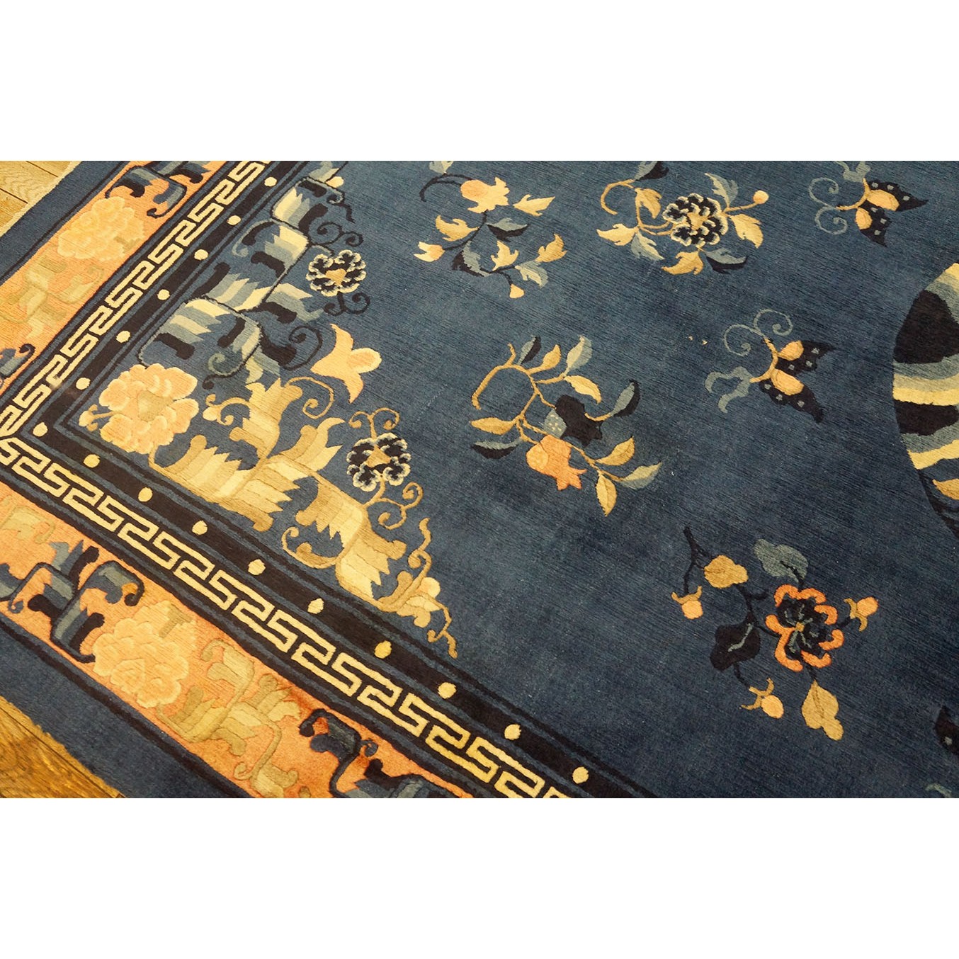 DescriptionChineseCarpets made in China proper. See entries Ningshia, Peking, Art Deco. Chinese - PekingThe commercial Peking carpet is a later 19th century development, begun by importing weaves from Ningshia (see entry) to create and export industry aimed at Western markets. The foundation is cotton and the pile is a good quality carpet wool which takes dyes particularly well. The neat medium weave is in Persian (asymmetric) knots. Designs are strictly Chinese and the whole motif repertoire of Chinese art is employed. Blue and white is the most popular color combination and red is particularly rare. Sizes tend to 9 x 12 and larger, and few small pieces appear. For a short time in the early 1920s Persian designs were woven to capitalize on the death of new Iranian goods. The industry decimated by the Communist Revolution relocated to the Pearl River area. There is a good supply of antique carpets at reasonable prices. | |