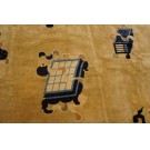 DescriptionChineseCarpets made in China proper. See entries Ningshia, Peking, Art Deco. Chinese - PekingThe commercial Peking carpet is a later 19th century development, begun by importing weaves from Ningshia (see entry) to create and export industry aimed at Western markets. The foundation is cotton and the pile is a good quality carpet wool which takes dyes particularly well. The neat medium weave is in Persian (asymmetric) knots. Designs are strictly Chinese and the whole motif repertoire of Chinese art is employed. Blue and white is the most popular color combination and red is particularly rare. Sizes tend to 9 x 12 and larger, and few small pieces appear. For a short time in the early 1920s Persian designs were woven to capitalize on the death of new Iranian goods. The industry decimated by the Communist Revolution relocated to the Pearl River area. There is a good supply of antique carpets at reasonable prices. | |