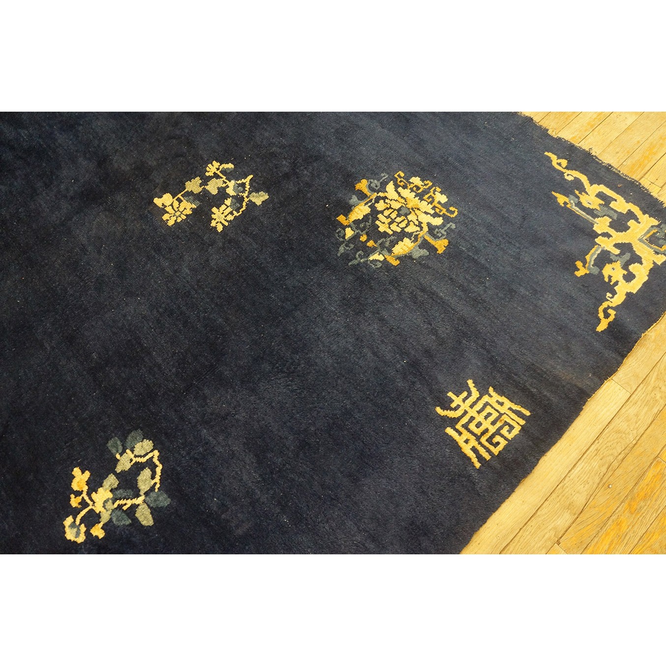 DescriptionChineseCarpets made in China proper. See entries Ningshia, Peking, Art Deco. Chinese - PekingThe commercial Peking carpet is a later 19th century development, begun by importing weaves from Ningshia (see entry) to create and export industry aimed at Western markets. The foundation is cotton and the pile is a good quality carpet wool which takes dyes particularly well. The neat medium weave is in Persian (asymmetric) knots. Designs are strictly Chinese and the whole motif repertoire of Chinese art is employed. Blue and white is the most popular color combination and red is particularly rare. Sizes tend to 9 x 12 and larger, and few small pieces appear. For a short time in the early 1920s Persian designs were woven to capitalize on the death of new Iranian goods. The industry decimated by the Communist Revolution relocated to the Pearl River area. There is a good supply of antique carpets at reasonable prices. | |