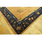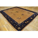 DescriptionChineseCarpets made in China proper. See entries Ningshia, Peking, Art Deco. Chinese - PekingThe commercial Peking carpet is a later 19th century development, begun by importing weaves from Ningshia (see entry) to create and export industry aimed at Western markets. The foundation is cotton and the pile is a good quality carpet wool which takes dyes particularly well. The neat medium weave is in Persian (asymmetric) knots. Designs are strictly Chinese and the whole motif repertoire of Chinese art is employed. Blue and white is the most popular color combination and red is particularly rare. Sizes tend to 9 x 12 and larger, and few small pieces appear. For a short time in the early 1920s Persian designs were woven to capitalize on the death of new Iranian goods. The industry decimated by the Communist Revolution relocated to the Pearl River area. There is a good supply of antique carpets at reasonable prices. | |