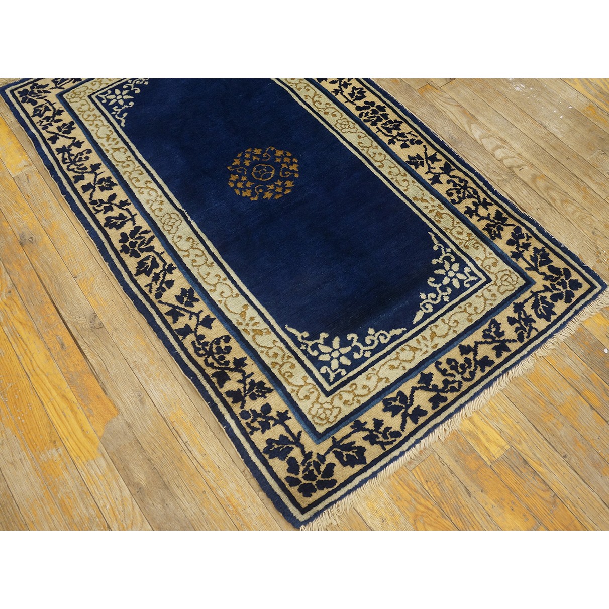 DescriptionChineseCarpets made in China proper. See entries Ningshia, Peking, Art Deco. Chinese - PekingThe commercial Peking carpet is a later 19th century development, begun by importing weaves from Ningshia (see entry) to create and export industry aimed at Western markets. The foundation is cotton and the pile is a good quality carpet wool which takes dyes particularly well. The neat medium weave is in Persian (asymmetric) knots. Designs are strictly Chinese and the whole motif repertoire of Chinese art is employed. Blue and white is the most popular color combination and red is particularly rare. Sizes tend to 9 x 12 and larger, and few small pieces appear. For a short time in the early 1920s Persian designs were woven to capitalize on the death of new Iranian goods. The industry decimated by the Communist Revolution relocated to the Pearl River area. There is a good supply of antique carpets at reasonable prices. | |