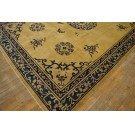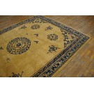 DescriptionChineseCarpets made in China proper. See entries Ningshia, Peking, Art Deco. Chinese - PekingThe commercial Peking carpet is a later 19th century development, begun by importing weaves from Ningshia (see entry) to create and export industry aimed at Western markets. The foundation is cotton and the pile is a good quality carpet wool which takes dyes particularly well. The neat medium weave is in Persian (asymmetric) knots. Designs are strictly Chinese and the whole motif repertoire of Chinese art is employed. Blue and white is the most popular color combination and red is particularly rare. Sizes tend to 9 x 12 and larger, and few small pieces appear. For a short time in the early 1920s Persian designs were woven to capitalize on the death of new Iranian goods. The industry decimated by the Communist Revolution relocated to the Pearl River area. There is a good supply of antique carpets at reasonable prices. | |