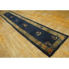DescriptionChineseCarpets made in China proper. See entries Ningshia, Peking, Art Deco. Chinese - PekingThe commercial Peking carpet is a later 19th century development, begun by importing weaves from Ningshia (see entry) to create and export industry aimed at Western markets. The foundation is cotton and the pile is a good quality carpet wool which takes dyes particularly well. The neat medium weave is in Persian (asymmetric) knots. Designs are strictly Chinese and the whole motif repertoire of Chinese art is employed. Blue and white is the most popular color combination and red is particularly rare. Sizes tend to 9 x 12 and larger, and few small pieces appear. For a short time in the early 1920s Persian designs were woven to capitalize on the death of new Iranian goods. The industry decimated by the Communist Revolution relocated to the Pearl River area. There is a good supply of antique carpets at reasonable prices. | |