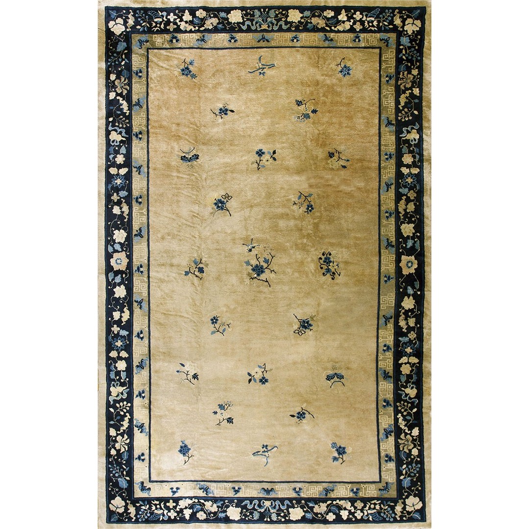 DescriptionChineseCarpets made in China proper. See entries Ningshia, Peking, Art Deco. Chinese - PekingThe commercial Peking carpet is a later 19th century development, begun by importing weaves from Ningshia (see entry) to create and export industry aimed at Western markets. The foundation is cotton and the pile is a good quality carpet wool which takes dyes particularly well. The neat medium weave is in Persian (asymmetric) knots. Designs are strictly Chinese and the whole motif repertoire of Chinese art is employed. Blue and white is the most popular color combination and red is particularly rare. Sizes tend to 9 x 12 and larger, and few small pieces appear. For a short time in the early 1920s Persian designs were woven to capitalize on the death of new Iranian goods. The industry decimated by the Communist Revolution relocated to the Pearl River area. There is a good supply of antique carpets at reasonable prices. | |