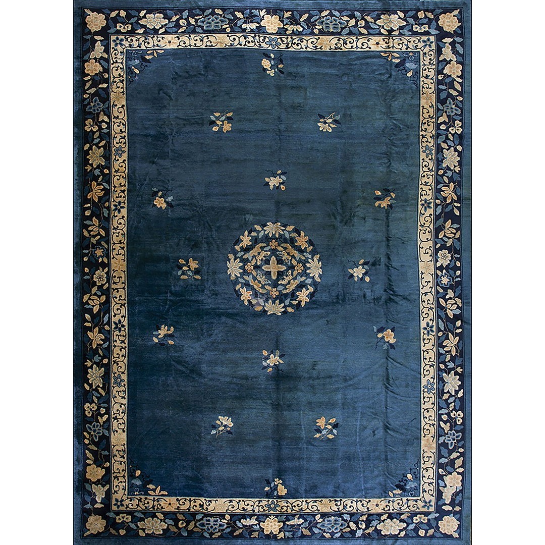 DescriptionChineseCarpets made in China proper. See entries Ningshia, Peking, Art Deco. Chinese - PekingThe commercial Peking carpet is a later 19th century development, begun by importing weaves from Ningshia (see entry) to create and export industry aimed at Western markets. The foundation is cotton and the pile is a good quality carpet wool which takes dyes particularly well. The neat medium weave is in Persian (asymmetric) knots. Designs are strictly Chinese and the whole motif repertoire of Chinese art is employed. Blue and white is the most popular color combination and red is particularly rare. Sizes tend to 9 x 12 and larger, and few small pieces appear. For a short time in the early 1920s Persian designs were woven to capitalize on the death of new Iranian goods. The industry decimated by the Communist Revolution relocated to the Pearl River area. There is a good supply of antique carpets at reasonable prices. | |