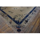 DescriptionChineseCarpets made in China proper. See entries Ningshia, Peking, Art Deco. Chinese - PekingThe commercial Peking carpet is a later 19th century development, begun by importing weaves from Ningshia (see entry) to create and export industry aimed at Western markets. The foundation is cotton and the pile is a good quality carpet wool which takes dyes particularly well. The neat medium weave is in Persian (asymmetric) knots. Designs are strictly Chinese and the whole motif repertoire of Chinese art is employed. Blue and white is the most popular color combination and red is particularly rare. Sizes tend to 9 x 12 and larger, and few small pieces appear. For a short time in the early 1920s Persian designs were woven to capitalize on the death of new Iranian goods. The industry decimated by the Communist Revolution relocated to the Pearl River area. There is a good supply of antique carpets at reasonable prices. | |