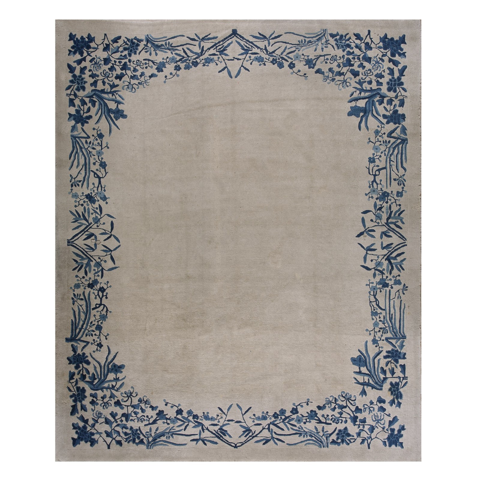 DescriptionChineseCarpets made in China proper. See entries Ningshia, Peking, Art Deco. Chinese - PekingThe commercial Peking carpet is a later 19th century development, begun by importing weaves from Ningshia (see entry) to create and export industry aimed at Western markets. The foundation is cotton and the pile is a good quality carpet wool which takes dyes particularly well. The neat medium weave is in Persian (asymmetric) knots. Designs are strictly Chinese and the whole motif repertoire of Chinese art is employed. Blue and white is the most popular color combination and red is particularly rare. Sizes tend to 9 x 12 and larger, and few small pieces appear. For a short time in the early 1920s Persian designs were woven to capitalize on the death of new Iranian goods. The industry decimated by the Communist Revolution relocated to the Pearl River area. There is a good supply of antique carpets at reasonable prices. | |