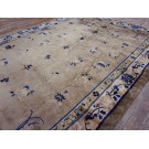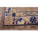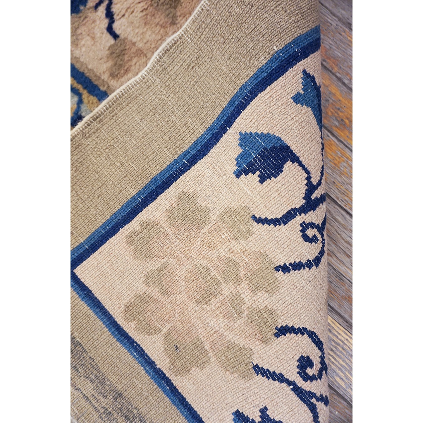DescriptionChineseCarpets made in China proper. See entries Ningshia, Peking, Art Deco. Chinese - PekingThe commercial Peking carpet is a later 19th century development, begun by importing weaves from Ningshia (see entry) to create and export industry aimed at Western markets. The foundation is cotton and the pile is a good quality carpet wool which takes dyes particularly well. The neat medium weave is in Persian (asymmetric) knots. Designs are strictly Chinese and the whole motif repertoire of Chinese art is employed. Blue and white is the most popular color combination and red is particularly rare. Sizes tend to 9 x 12 and larger, and few small pieces appear. For a short time in the early 1920s Persian designs were woven to capitalize on the death of new Iranian goods. The industry decimated by the Communist Revolution relocated to the Pearl River area. There is a good supply of antique carpets at reasonable prices. | |