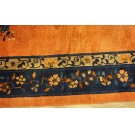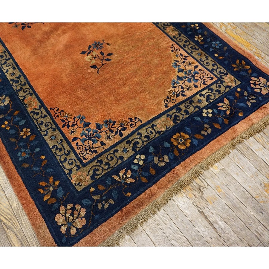 DescriptionChineseCarpets made in China proper. See entries Ningshia, Peking, Art Deco. Chinese - PekingThe commercial Peking carpet is a later 19th century development, begun by importing weaves from Ningshia (see entry) to create and export industry aimed at Western markets. The foundation is cotton and the pile is a good quality carpet wool which takes dyes particularly well. The neat medium weave is in Persian (asymmetric) knots. Designs are strictly Chinese and the whole motif repertoire of Chinese art is employed. Blue and white is the most popular color combination and red is particularly rare. Sizes tend to 9 x 12 and larger, and few small pieces appear. For a short time in the early 1920s Persian designs were woven to capitalize on the death of new Iranian goods. The industry decimated by the Communist Revolution relocated to the Pearl River area. There is a good supply of antique carpets at reasonable prices. | |