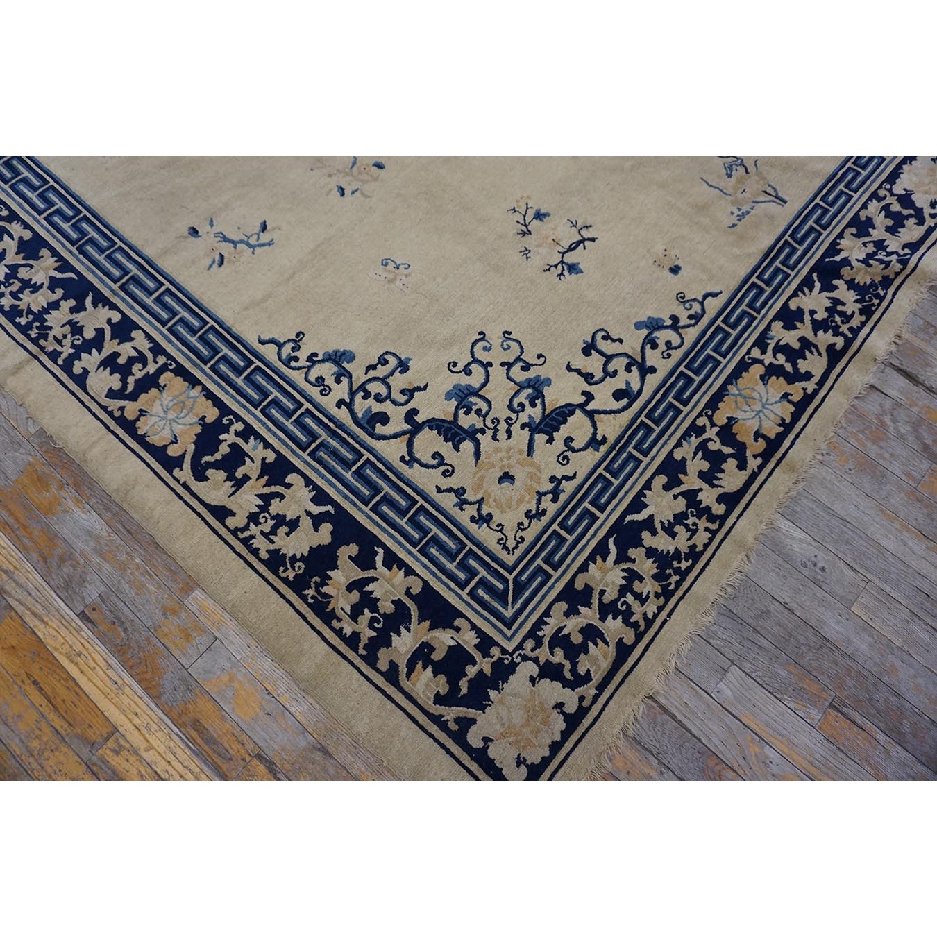 DescriptionChineseCarpets made in China proper. See entries Ningshia, Peking, Art Deco. Chinese - PekingThe commercial Peking carpet is a later 19th century development, begun by importing weaves from Ningshia (see entry) to create and export industry aimed at Western markets. The foundation is cotton and the pile is a good quality carpet wool which takes dyes particularly well. The neat medium weave is in Persian (asymmetric) knots. Designs are strictly Chinese and the whole motif repertoire of Chinese art is employed. Blue and white is the most popular color combination and red is particularly rare. Sizes tend to 9 x 12 and larger, and few small pieces appear. For a short time in the early 1920s Persian designs were woven to capitalize on the death of new Iranian goods. The industry decimated by the Communist Revolution relocated to the Pearl River area. There is a good supply of antique carpets at reasonable prices. | |