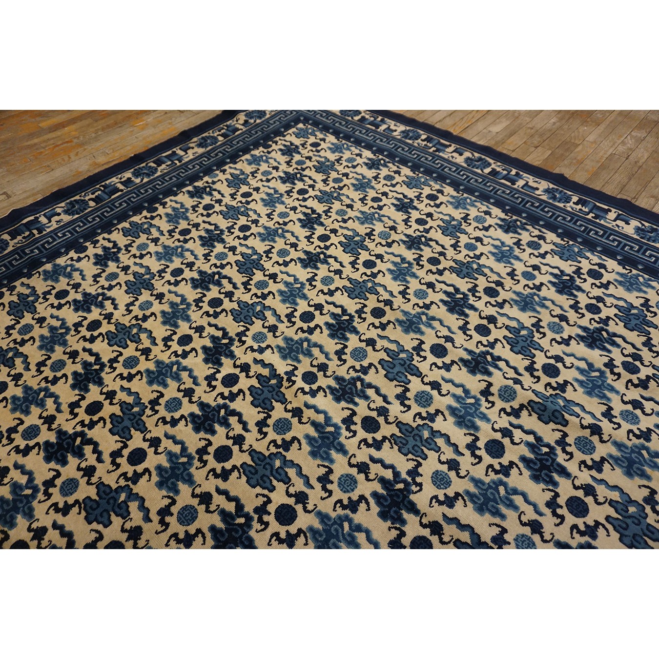 DescriptionChineseCarpets made in China proper. See entries Ningshia, Peking, Art Deco. Chinese - PekingThe commercial Peking carpet is a later 19th century development, begun by importing weaves from Ningshia (see entry) to create and export industry aimed at Western markets. The foundation is cotton and the pile is a good quality carpet wool which takes dyes particularly well. The neat medium weave is in Persian (asymmetric) knots. Designs are strictly Chinese and the whole motif repertoire of Chinese art is employed. Blue and white is the most popular color combination and red is particularly rare. Sizes tend to 9 x 12 and larger, and few small pieces appear. For a short time in the early 1920s Persian designs were woven to capitalize on the death of new Iranian goods. The industry decimated by the Communist Revolution relocated to the Pearl River area. There is a good supply of antique carpets at reasonable prices. | |