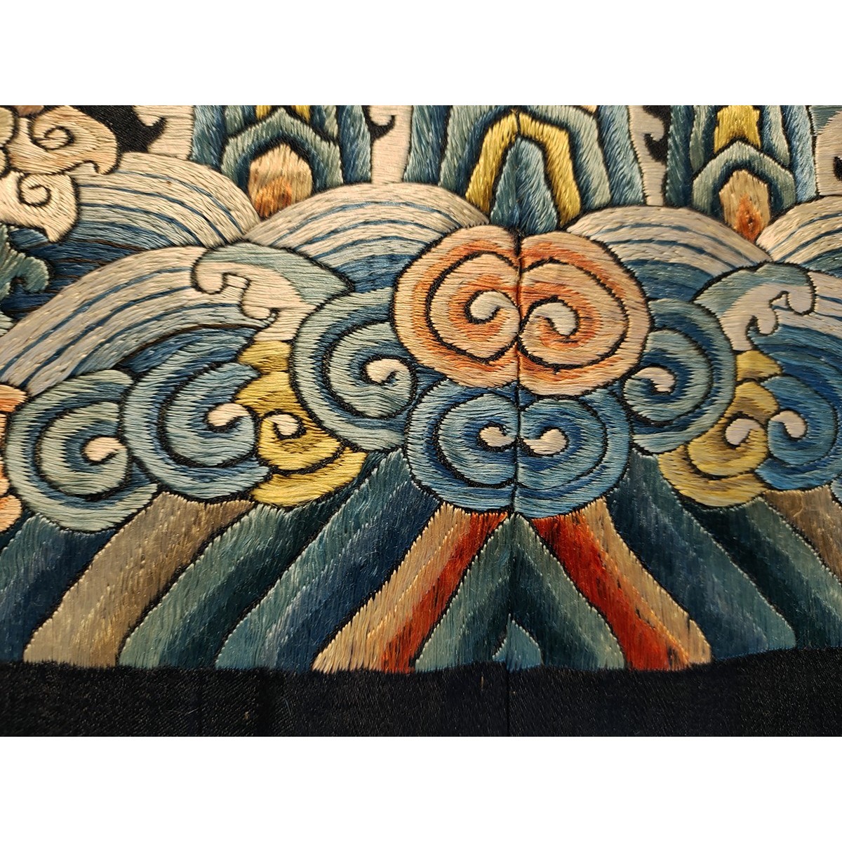 19th Century Chinese Silk & Metallic Thread Dragon Embroidery